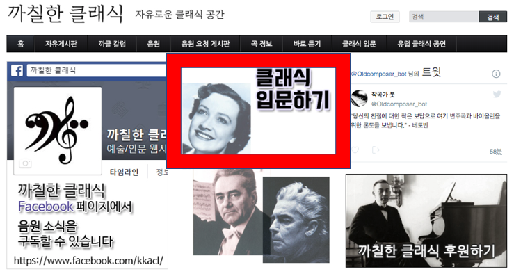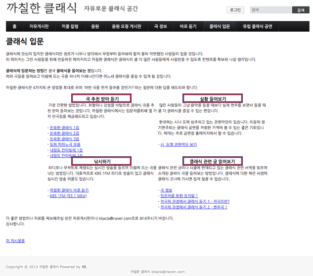 이렇게 까칠한 클래식 홈페이지로 이동했다면, 아래와 같은 까칠한 클래식 홈페이지 메인화면을 만나볼 수 있을 것 입니다. 다른 사이트로 잘 못 접속했는지 확인을 시켜드리기 위해서 메인화면을 캡처하여 업로드 해보았습니다.