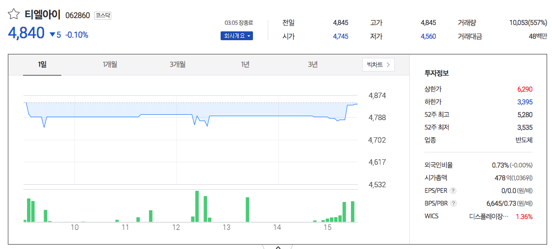 그렇지만, 계속해서 영업이익과 당기순이익이 적자가 나오있는 상황이며, 그런 기업으로 재무상태가 부실한 기업으로 보고있습니다. 관련주 움직임을 보여주기는 한다만, 재무상태로써 좋지않은 상황이기에 매수에 대해서 우려하기에는 조금은 힘든 종목이 아닐까 생각이 들곤 합니다.
