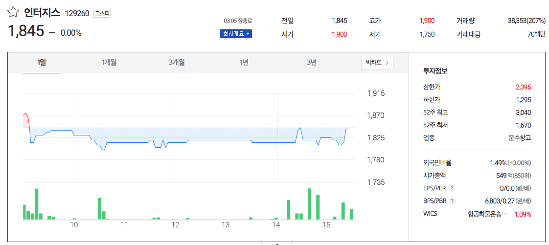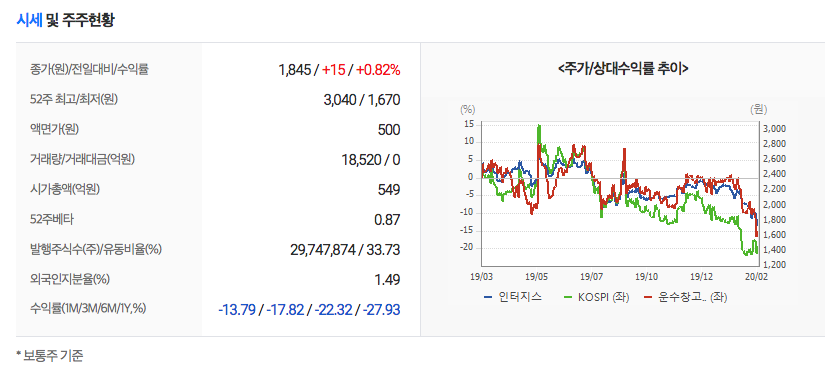 인터지스는 항만하역업과 화물운송업에 대해 사업을 진행하고있는 기업이고 1956년도 부터는 약 64년동안 운영을 하고있는 회사입니다.