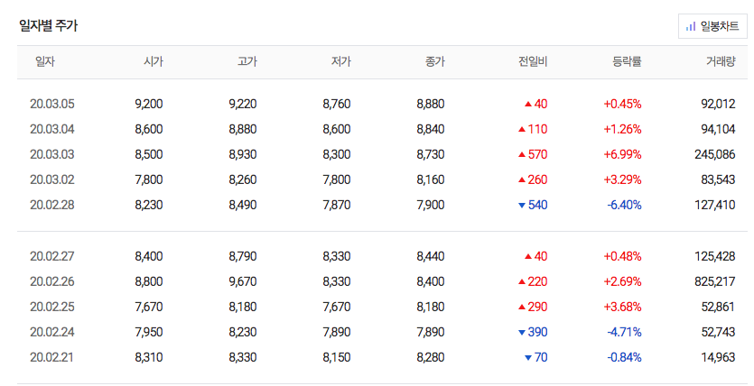 또 다른 이재명 관련주와 같이 2018년 5월경 이재명이 당선이 되었던 시기에 약 2배정도 크게 상승이 되었으며, 10,750을 기록한 바 있습ㄴ니다.