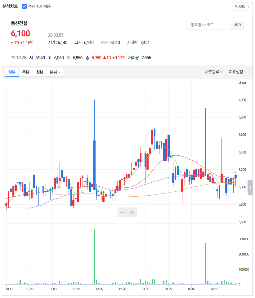 동신건설 월봉차트를 보아도 2016년과 2018년에는 큰 상승을 보여준 것으로 확인이 되면서, 이재명 관련주로써 대표적인 모습을 보여준다고합니다. 해당 회사의 재무상태로는 매출 그리고 영업이익과 순이익이 줄어들고 있기에 많이 긍정적이지는 않다고합니다.